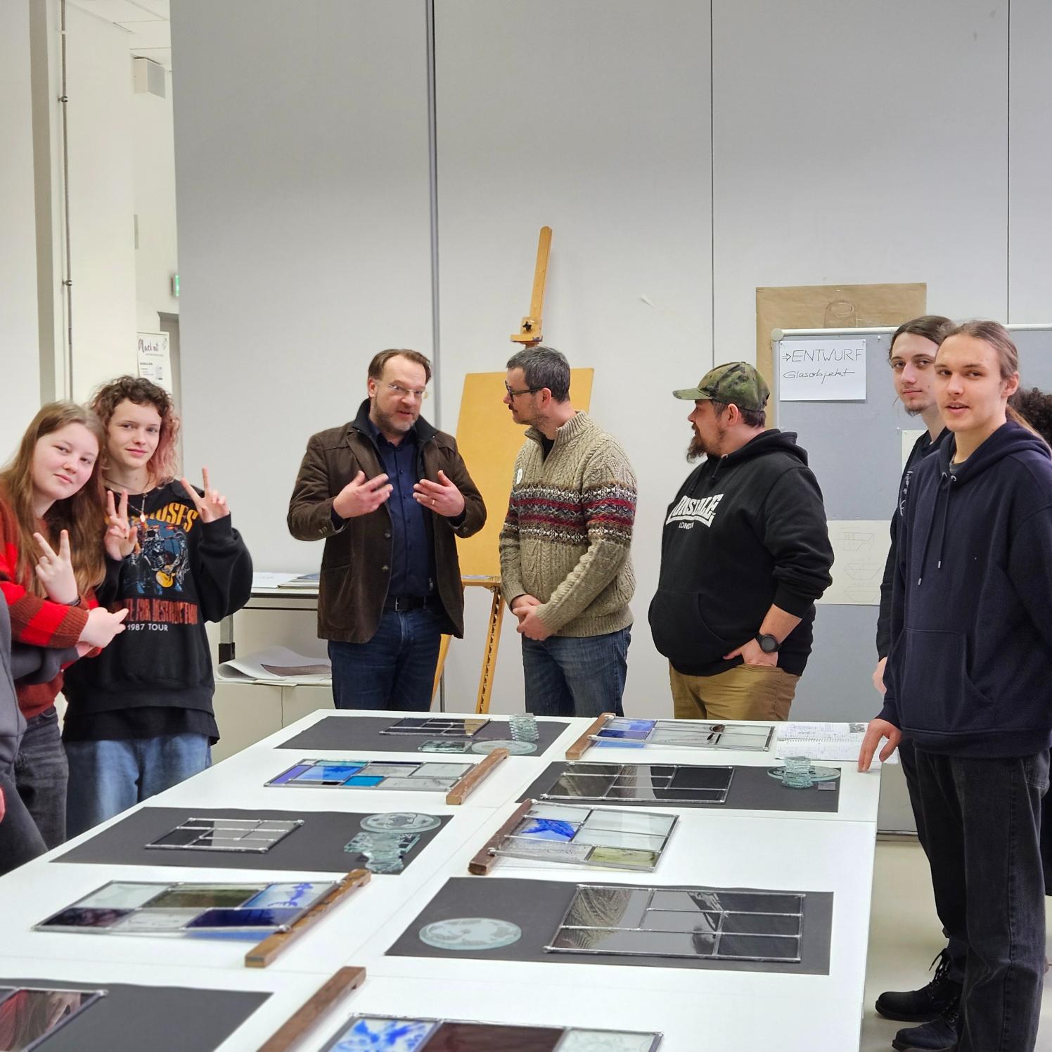 Im Rahmen des Erasmus-Programms der Europäischen Union sind vom 26. Januar bis 6. Februar 2026 acht Schülerinnen und Schüler sowie zwei Lehrer unserer Partnerschule in der Tschechischen Republik zu Gast in Rheinbach. Wichtige Ziele des etablierten Austauschs sind ein Erlernen neuer handwerklicher Techniken in der Glasbearbeitung und die Förderung des Verständnisses der langen Glaskulturen beider Länder. Indem sich junge Menschen aus beiden Ländern in Projekten kennenlernen, wächst auch Europa ein wenig mehr zusammen.
