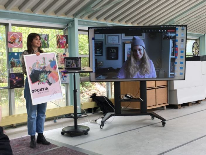 Den Gewinner*innen wurde mit signierten und gerahmten Ausdrucken ihrer Entwürfe gratuliert. Die Gestaltung der EP „Opuntia“, die bald auch gepresst wird, hat Lena Mengelberg gewonnen. Die Entwürfe für die Veröffentlichungen der Singles „Boom“ und „Questions“ stammen von Melissa Pinheiro Macario und Luis Oeser.
